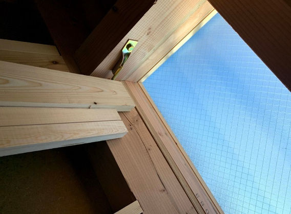 また、屋根勾配が小さいため、天窓には日本ベルックス社製「FCM」を採用。屋根勾配なしにも対応できるように設計されているため、雨漏りのリスクも小さくなっています。